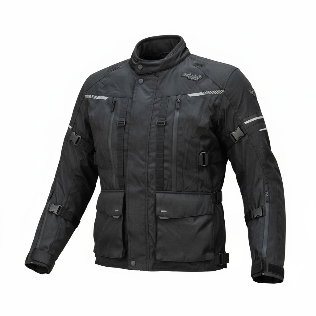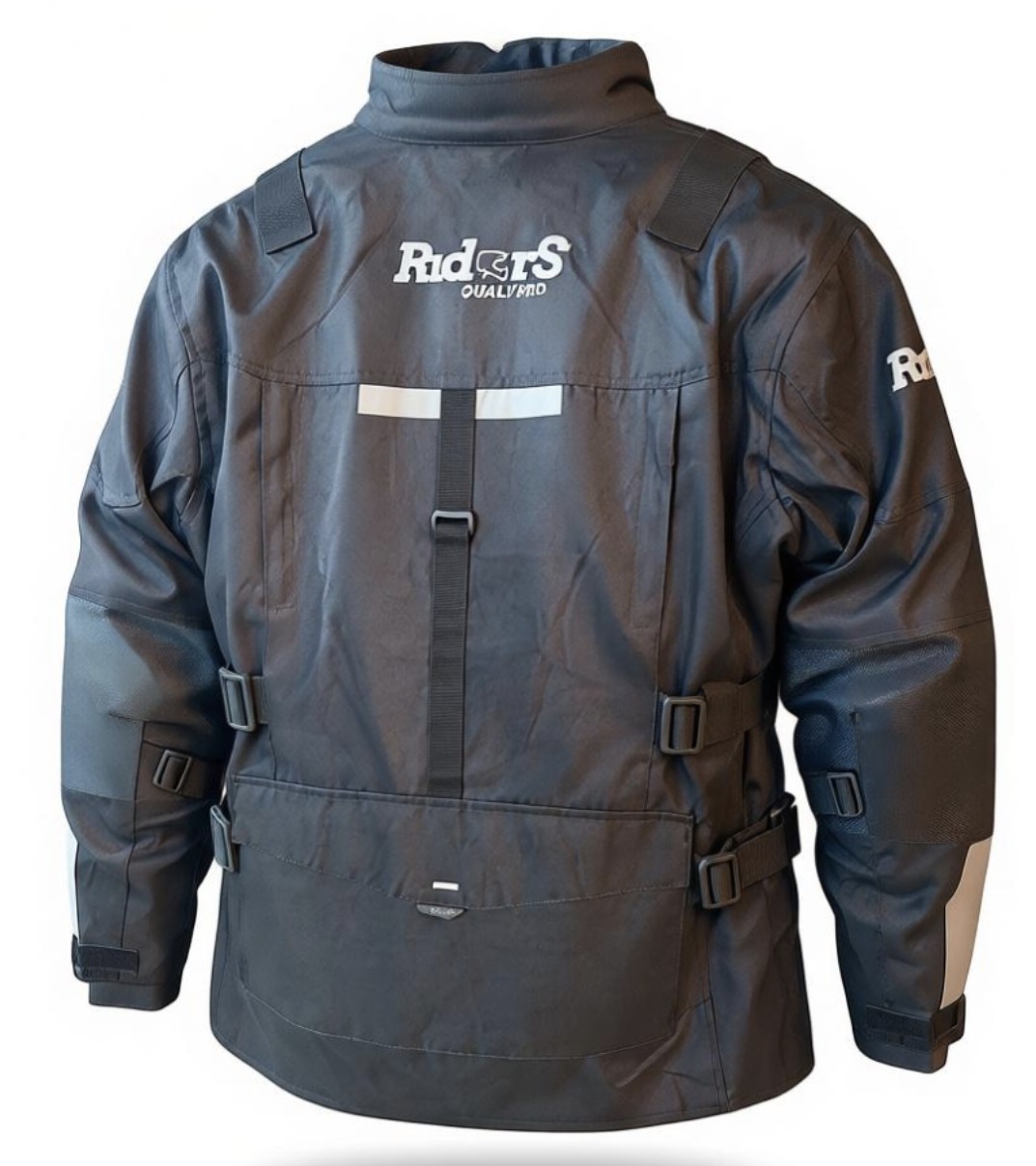 Cuatro bolsillos externos con cremallera en la chaqueta